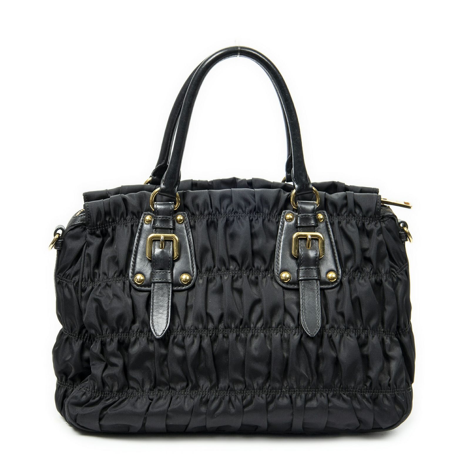 PRADA プラダプリーツジップトート黒テスート ゴーフルキャンバスA