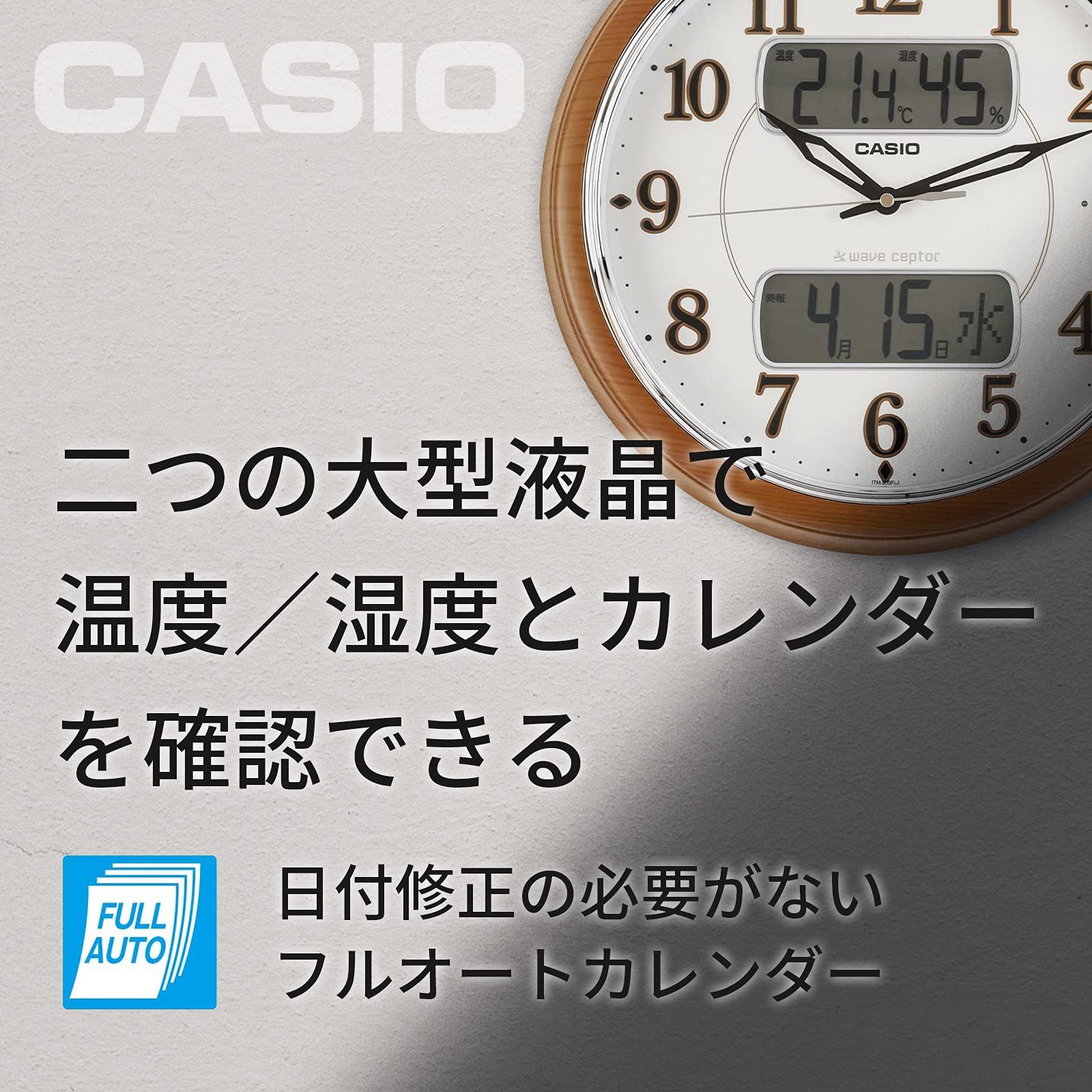 CASIO カシオ 掛け時計 壁掛け時計 電波時計 ブラウン アナログ 夜間秒針停止 自動点灯 ライト 時報付き時計 ITM-900 FLJ-5 JF