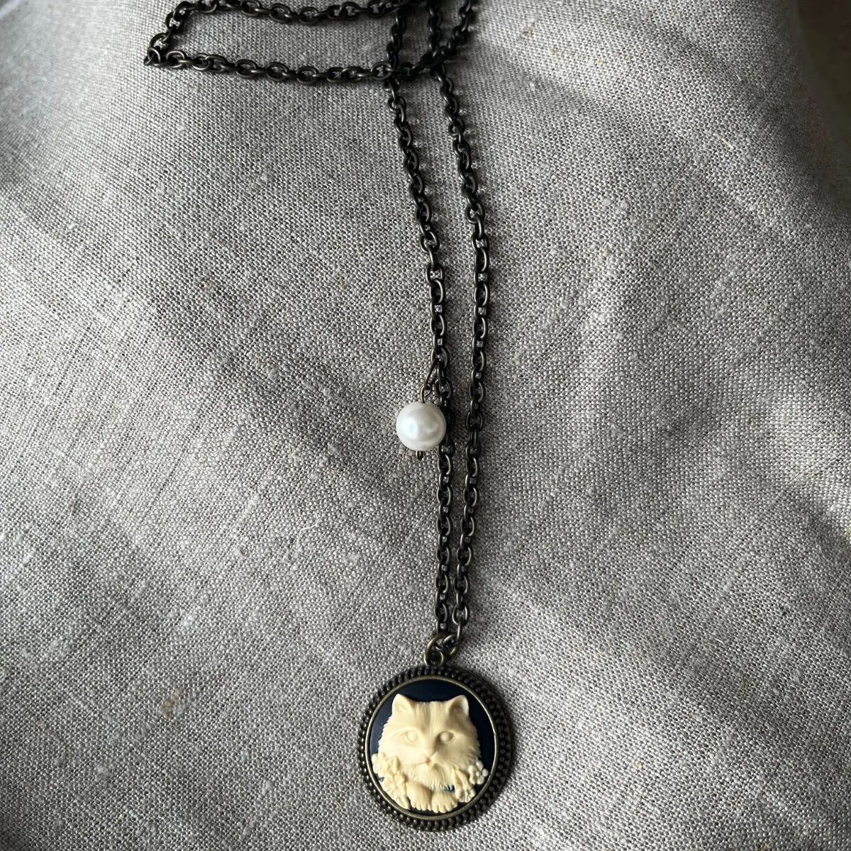 #猫 #ネコ #カメオ #ヴィンテージ #アンティーク #大人可愛い #ハンドメイドアクセサリー #ロングネックレス #一点もの