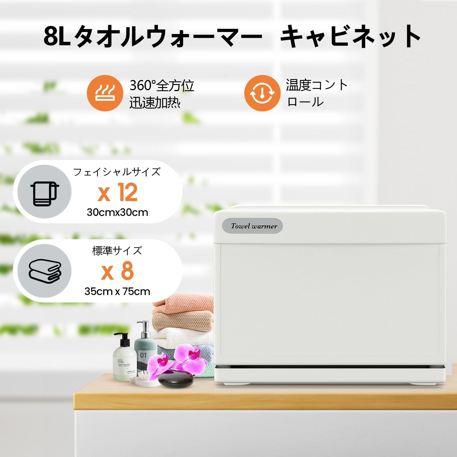 数量 タオルウォーマー タオルスチーマー 8 L タオル蒸し器 おしぼり蒸し器 ホットボックス 前開き タオル おしぼり 蒸しタオル 業務用 小型 ホワイト