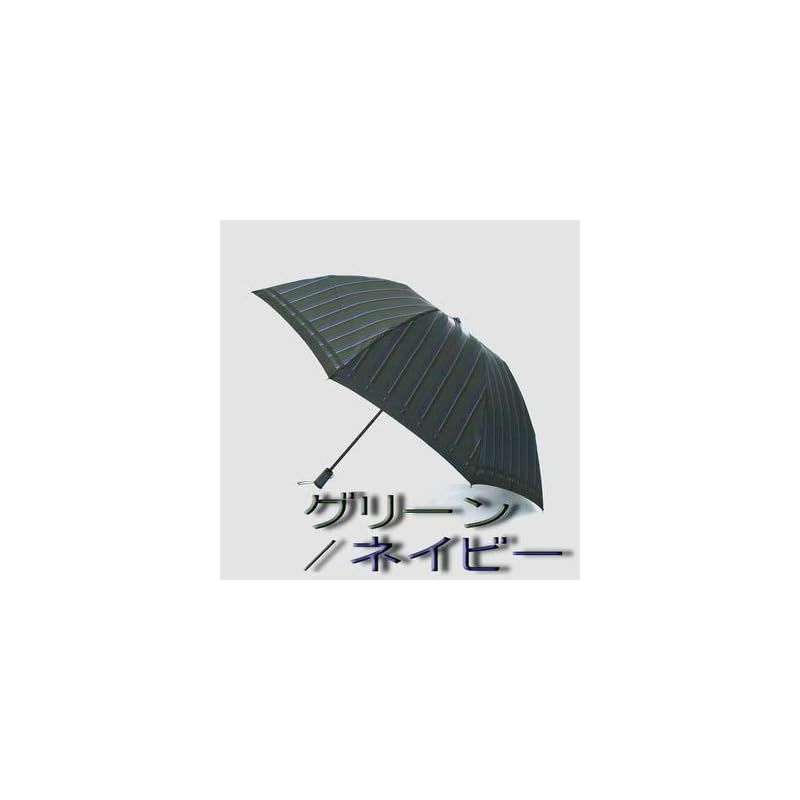 商品名:槙田商店 傘 メンズ 折りたたみ ミニ 「 Tie 」(タイ) 表 ストライプ ×裏 無地 グリーン ネイビー 高級 甲州織 日本製 7193