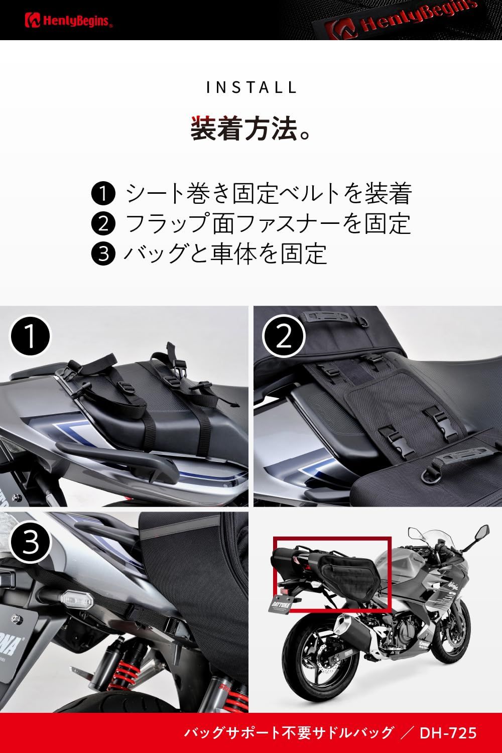 ヘンリービギンズ Henly Begins デイトナ バイク用 サイドバッグ ステー不要 振り分けサイドバッグ