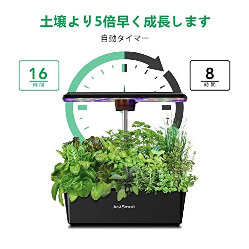 JustSmart 水耕栽培キット 室内 水耕栽培 おしゃれ 家庭菜園 キット LEDライト付き 自動水循環システム搭載 高さ調節 IGS-20 SE ブラック