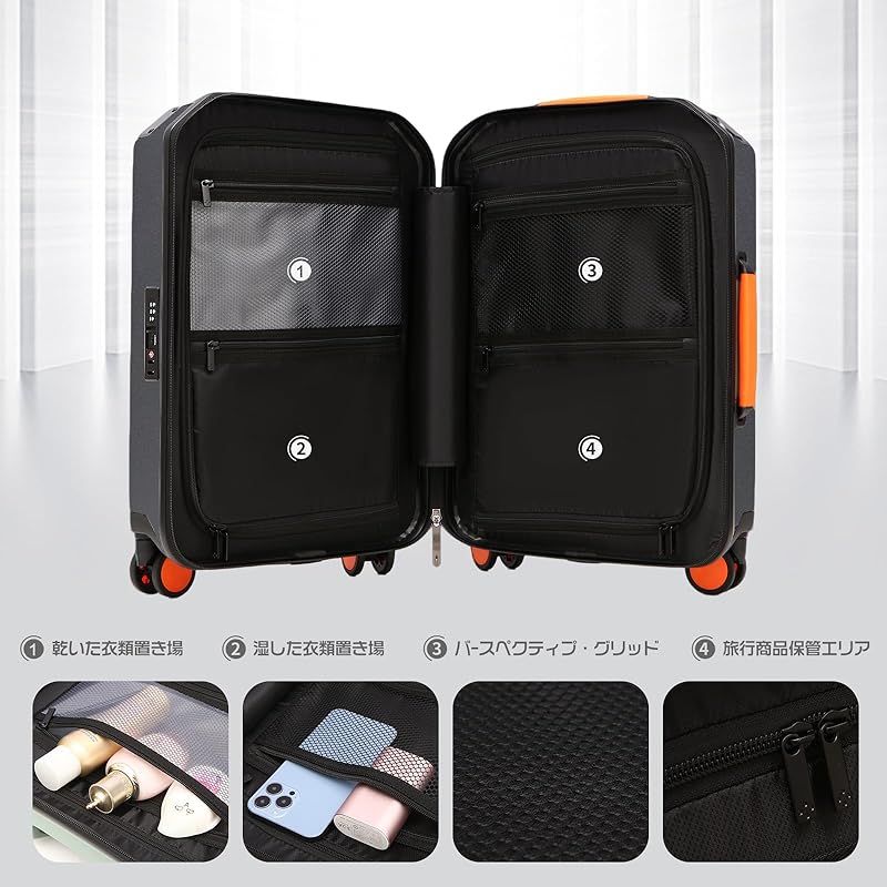【材質&TSAダイヤル式ロック】スースケースはPC素材を採用し、耐衝撃性に優れた上、高弾性で、変形しにくい。エンボス加工、傷つきにくい。ABS素材より頑丈で耐久性に優れ、アルミフレームスーツケースより軽量で持ち歩きやすい。TSAダイヤル式ロックが搭載されて、外出がより安全。また、鍵穴は航空会社検査専用の物です。本製品に鍵は付属しておりません。