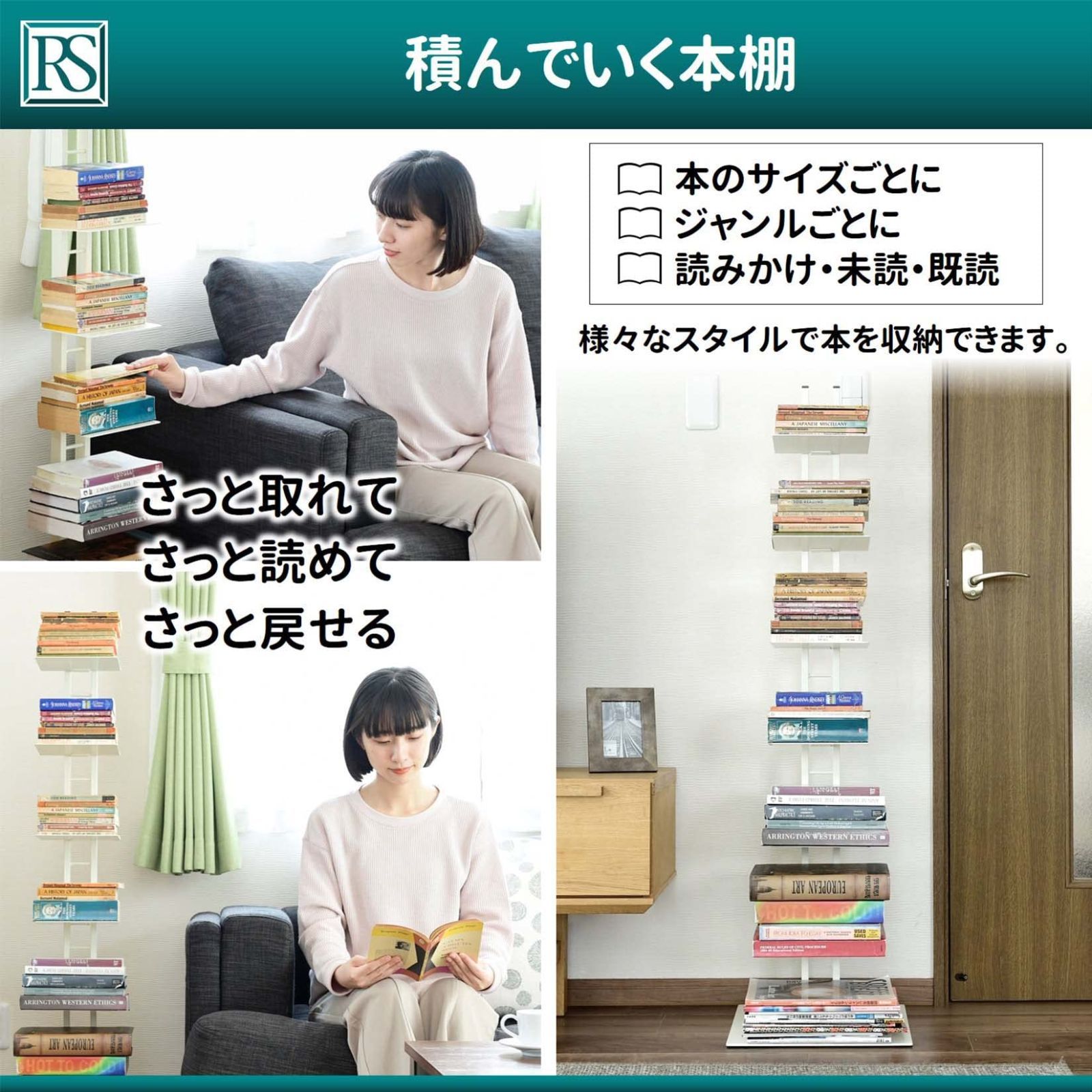【積んでいく本棚】本棚といえば立てて収納するイメージが強いですが、この「タワーシェルフシャトー」は積んでいくタイプの「積読(つんどく)」スタイルの本棚。読み終わったらポンと置くだけ、読み返す時もさっと取れる。読書がお好きな方にオススメです。