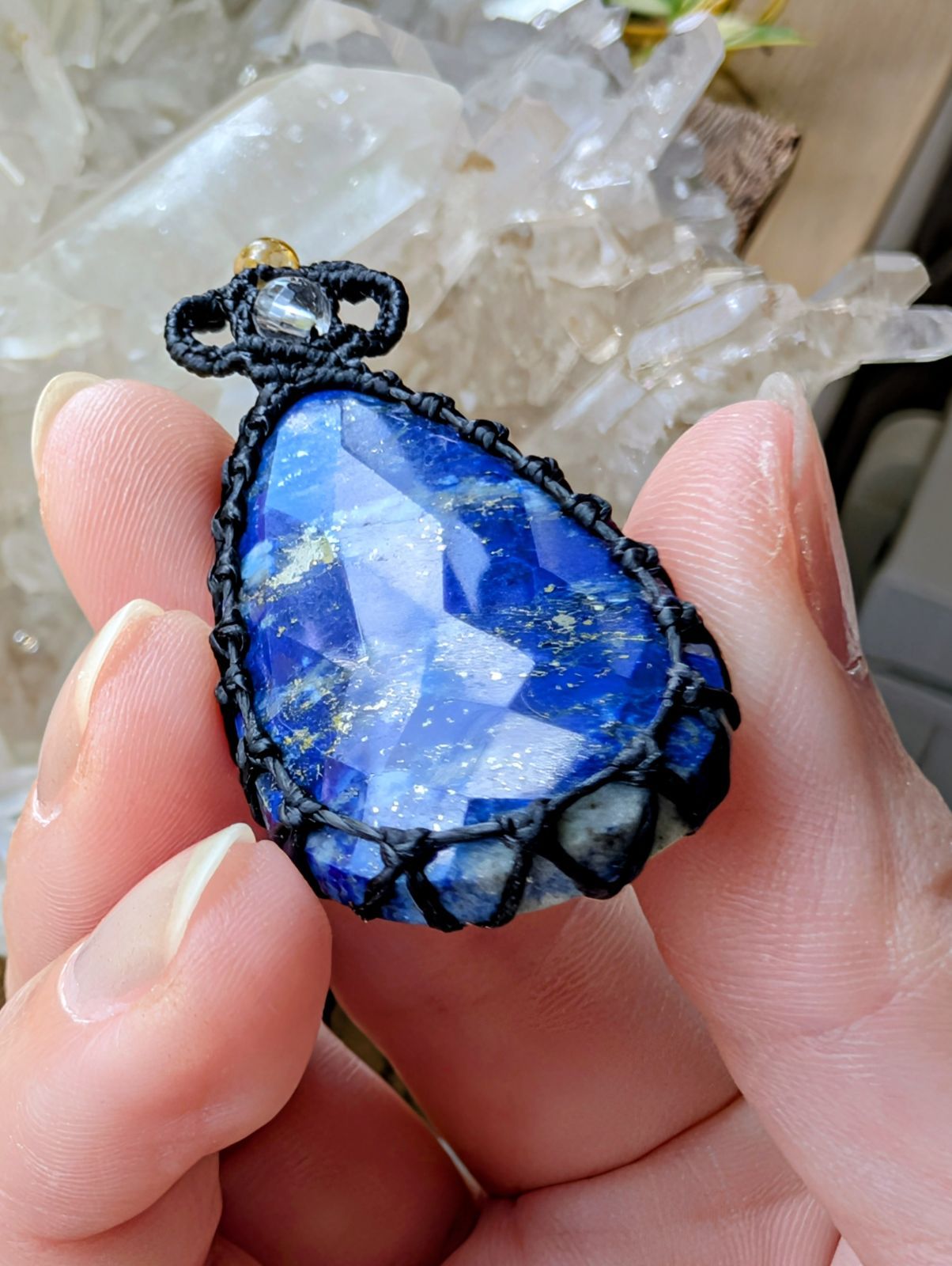 ファセットカット入り ラピスラズリ 瑠璃 マクラメ編みネックレス 396 マクラメネックレス