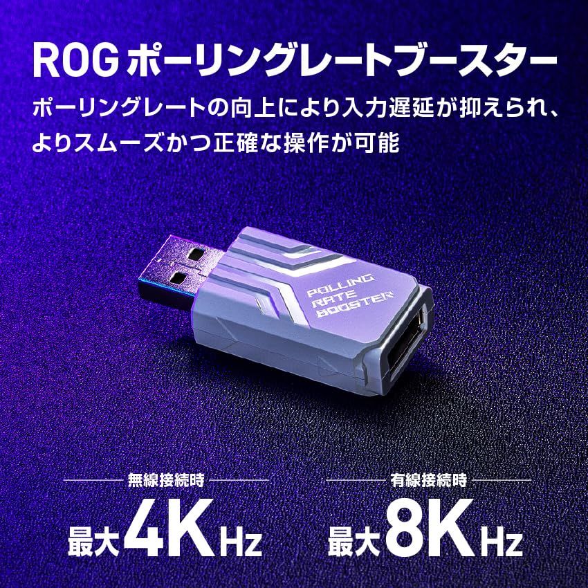 ASUS ゲーミングマウス ROG Keris II Ace / 54g軽量設計 / ワイヤレス / 最大8000Hz ポーリングレート/左右非対称エルゴノミクス形状 / 42K DPI オプティカルセンサー / 107時間のバッテリー持続 / 1億回のクリッ