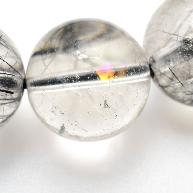 虹が輝き上品な 11 mm ブラックトルマリンインクォーツブレスレット GHB 97 安心 守護 浄化 前向き 安定 落ち着き ネガティブ除去 高品質 プレゼント 贈り物 天然石41g 浄化発送 メンズ レディース 京海堂 天然石の卸 京の蔵