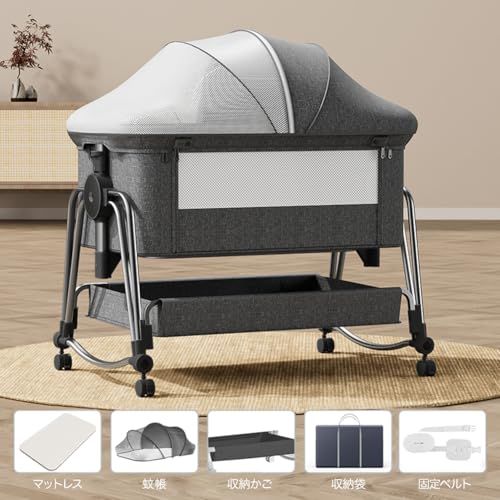 ベビーベッド 添い寝 高さ5段調節可能 睡吐防止 乳児用ベッド 新生児ベッド 多機能ベビーベッド 組み立て簡単 収納便利 揺りかご 蚊帳 キャスタ付き 持ち運び メッシュ 通気性 折り畳み 洗濯可能 赤ちゃん 寝具 新生児 出産祝い 0ヶ月 ~ 24ヶ月 マッ