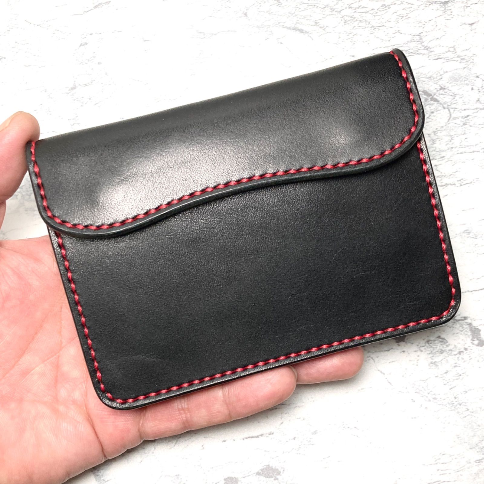栃木レザー ギャルソンウォレット 本革 コンパクト財布 手縫い 二つ折り財布 黒