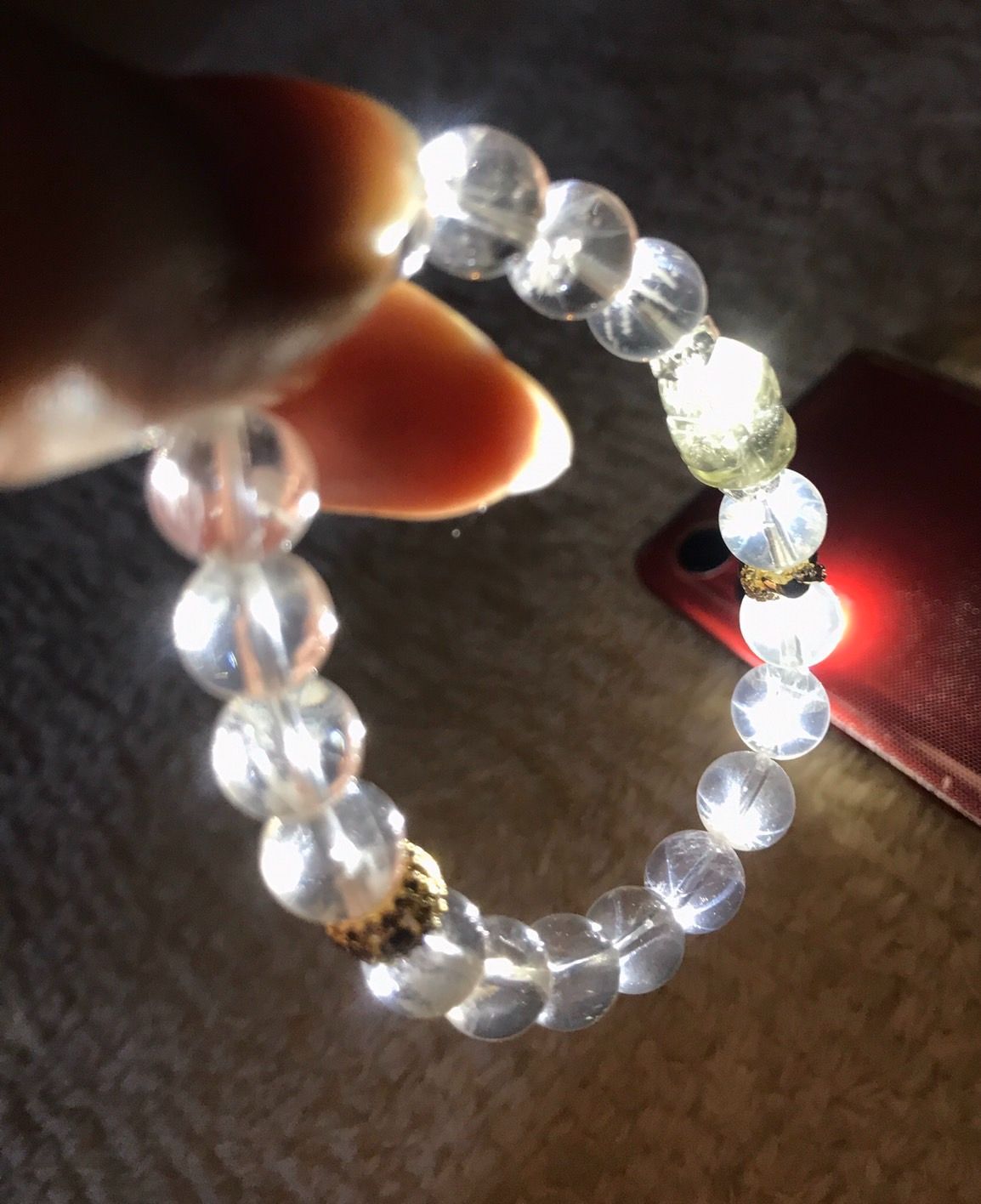 透明度の高い高品質リビアングラスのレアな手彫りガネーシャ神のビーズとセリサイトインスターローズクォーツのデザインブレスレットです。