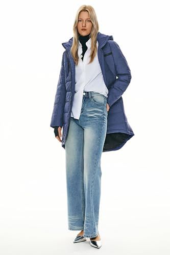 [Orolay] ダウンジャケット レディース ダウンコート パファージャケット アウトドア 防寒コート 膝丈 フード付き aライン ポケット付き 厚手 無地 防寒 防風 撥水 暖かい 着痩せ 通学 通勤 冬服 春 秋 冬(ブルー,XL)