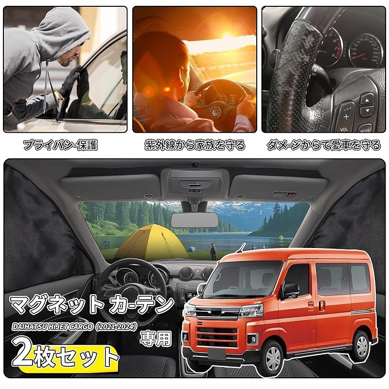 ZATOOTO 車用 カーテン ダイハツ ハイゼット カーゴ アトレー S 700 V 710 マグネット 車中泊カーテン 遮光 運転席助手席 車種 用品 セット カー用品 ブラック CT 119-QC