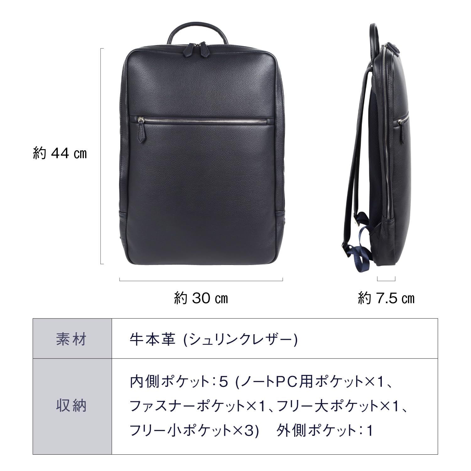 ?【傷のつきにくいシュリンクレザーを採用】ビジネスリュックの革は、高級ブランドでも使用される傷のつきにくいシュリンクレザーを採用しました。耐久性があり傷のつきにくい革ですので毎日使う仕事用や普段使いにぴったりです。ツヤ感のある高級な牛本革を使用しており、ビジネスシーンからフォーマル、デートまでシーンを選ばずにご使用いただけます。末永くご愛用頂けます。