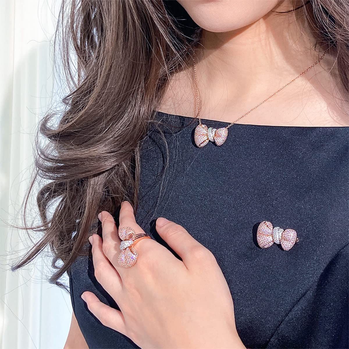 ウェディング 花嫁のジュエリー 女性用 プロム 絶妙なブローチピン リボン ロジウムメッキ真鍮 キュービックジルコニア パヴェ LAVINA