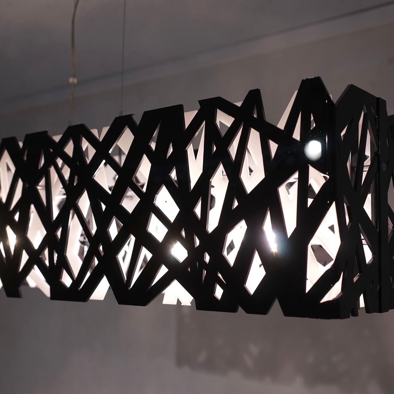 幾何学的に構成されたシェードが光を拡散させ、空間に美しい陰影を生み出すデザイン。