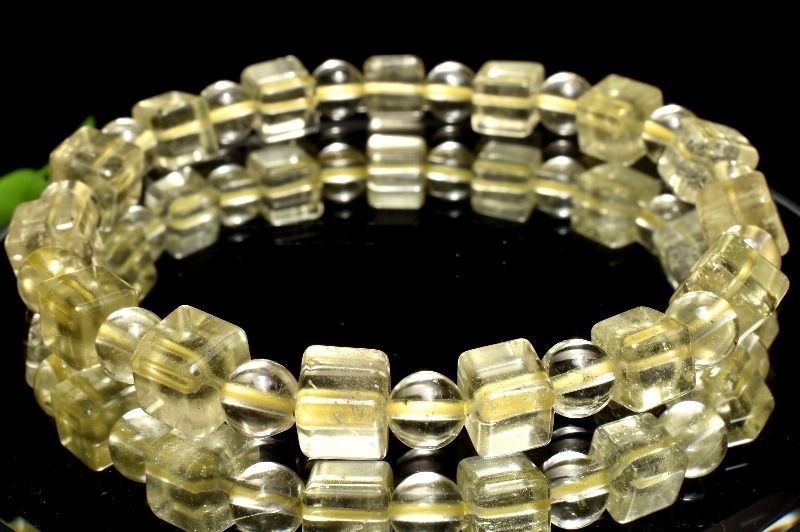 1点物 リビア砂漠の宝 リビアングラス 7 x 丸玉6 mm キューブ ブレスレット パワーストーン 天然石 _MC 363