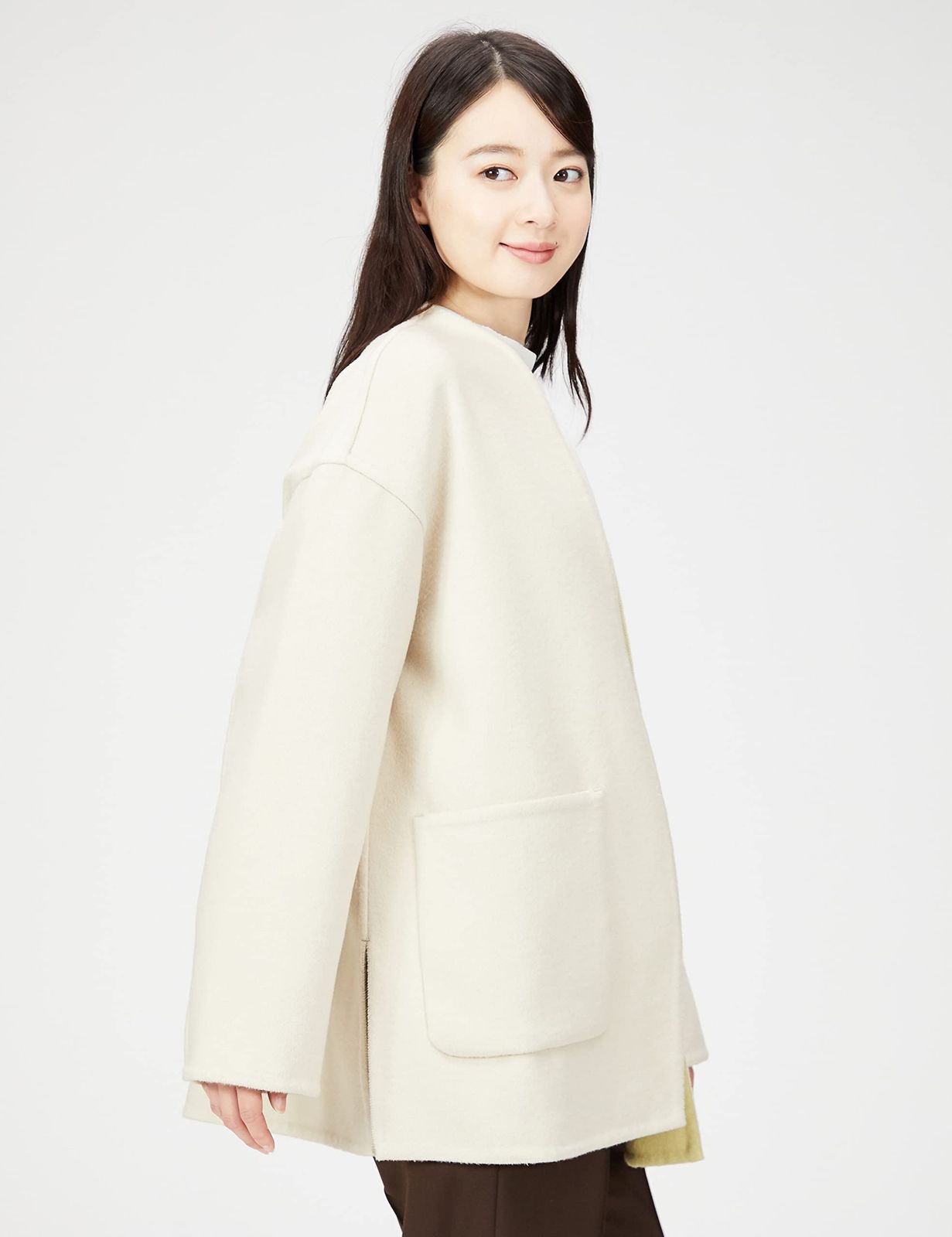 [ナチュラルビューティーベーシック] アウター Vネックハーフリバーコート レディース アイボリー×ライム S