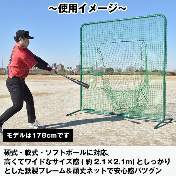 高くてワイドなサイズ感(約2.1×2.1m)と、しっかりとした鉄製フレーム&頑丈ネットで安心感バツグンのバッティングネットです!