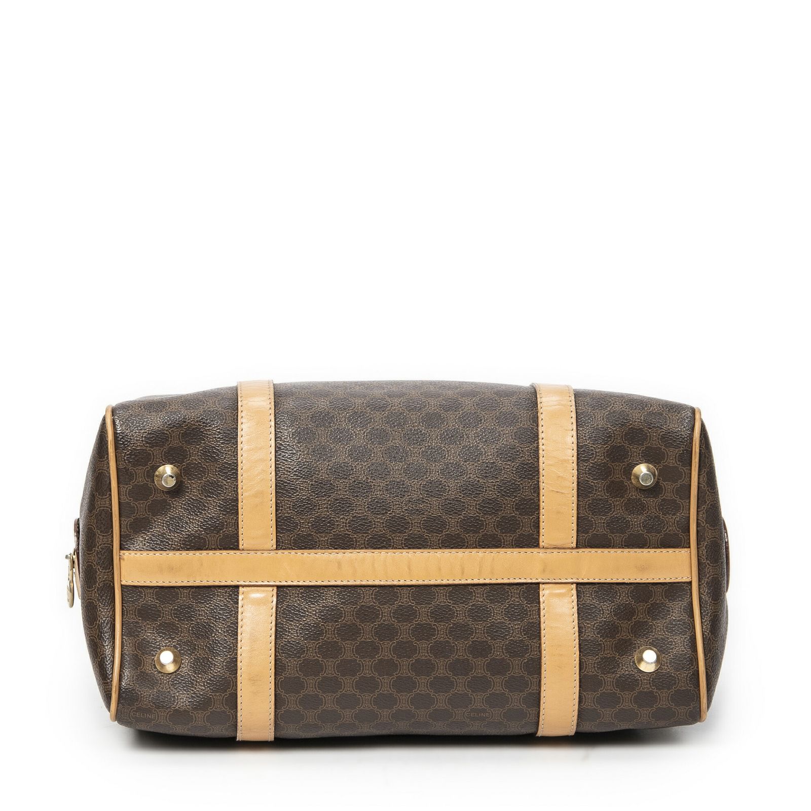 CELINE セリーヌヴィンテージ スモール ボストンブラウン ベージュマカダムPVCキャンバスAB
