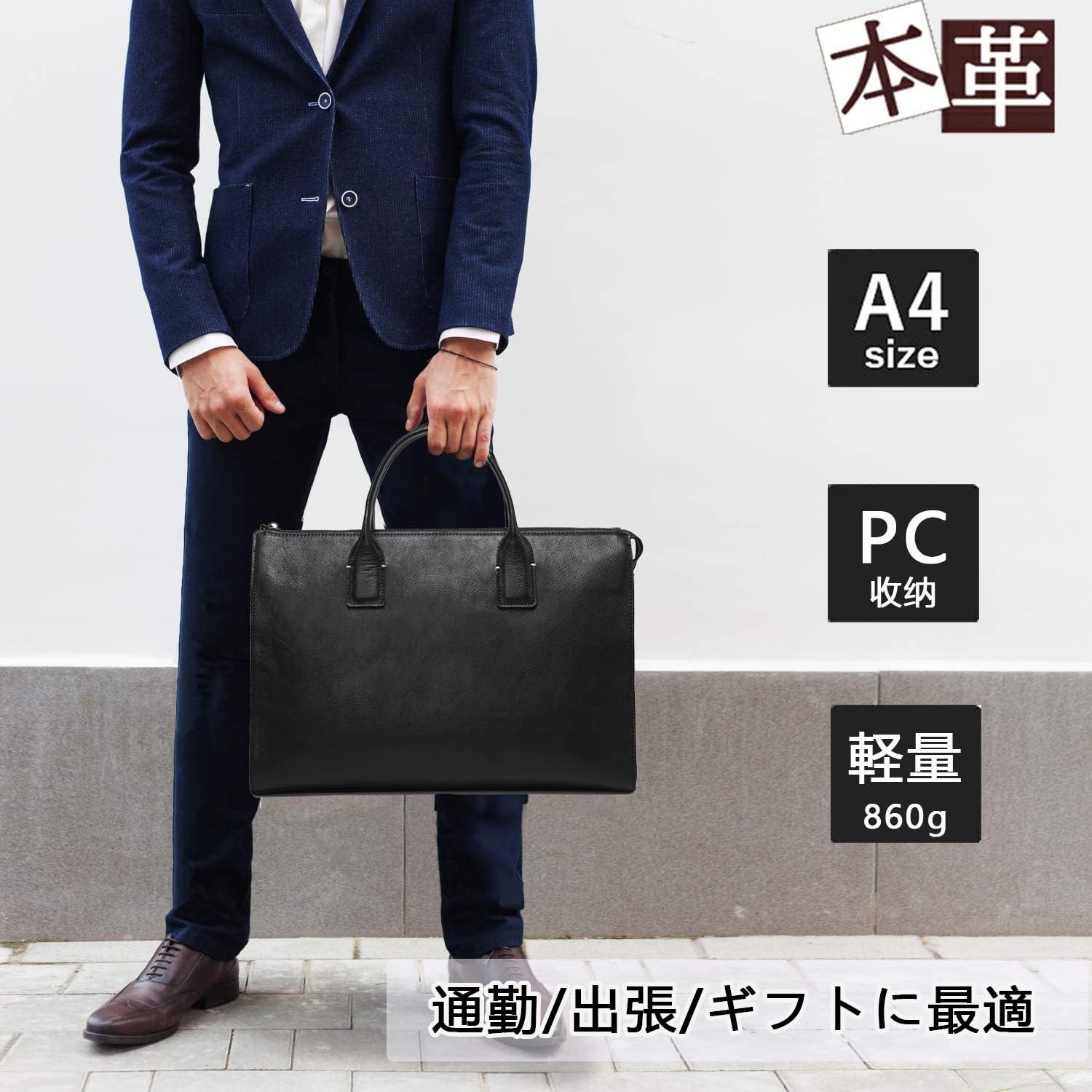 AKIYAMA ブリーフケース 防水 メンズ ビジネスバッグ 本革 レザー ミニ トート大容量 a4対応 PC 通勤 ビジネス 自立 出張 (ブラック色) W38×H27×D11cm