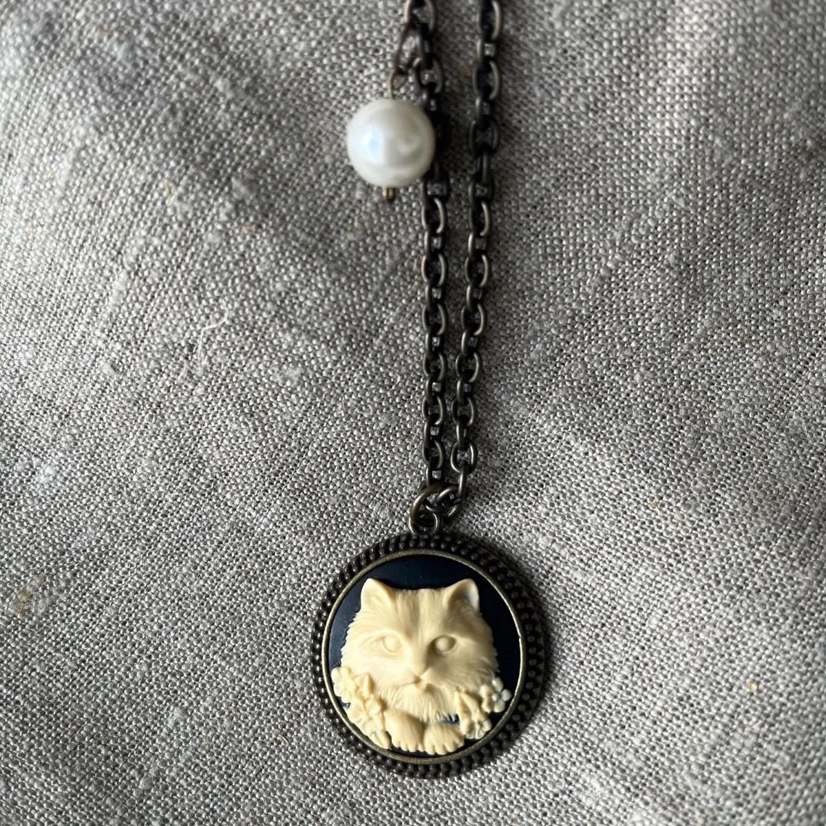 大人可愛い猫のヴィンテージカメオネックレス?⬛