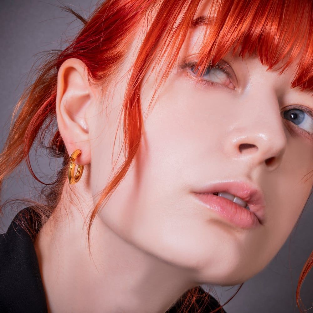 正面がぽっかり空いて見える、視線を奪うトリッキーなフープピアス。キャッチから造形が伸びてフープへとつながる立体構造で、角度によって表情が変わります。キャッチは可憐な花モチーフ、フープはシンプルかつレイヤード感のあるトレサリーデザイン。全体にK10メッキを施し、上質な艶とあたたかなゴールドの輝きをプラスしました。耳元にちょうどいいボリュームで着け心地は軽やか。カジュアルからきれいめまで幅広く馴染み、単体はもちろん左右アシンメトリーのアレンジにも好相性です。フープにはブランドロゴと「925」の品質刻印に加え、サークル王冠・シールドライオン・スクエアJPの3種ホールマークスタンプを刻印。細部までこだわりが息づく一本です。