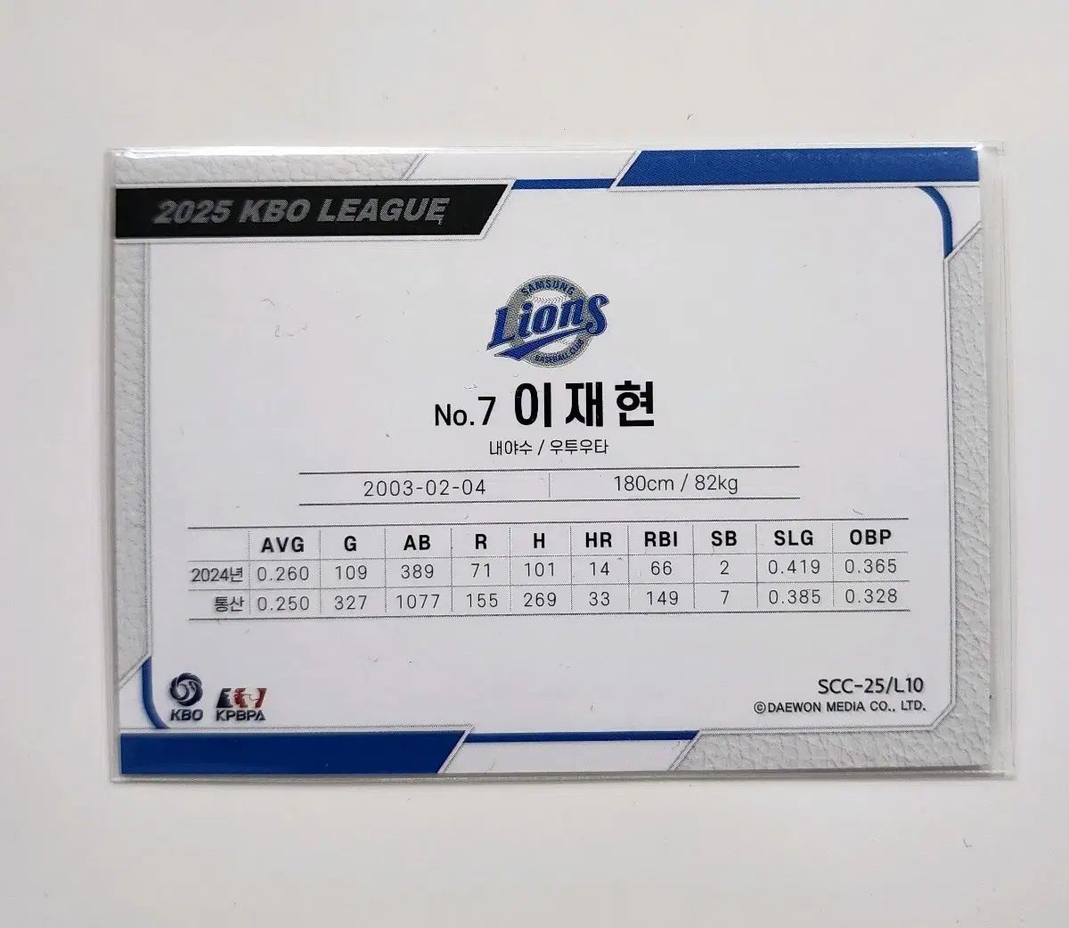 scc 感覚 野球カード 2025 サムスン ライオンズ 李在賢 イ ジェヒョン 直筆 サイン カード
