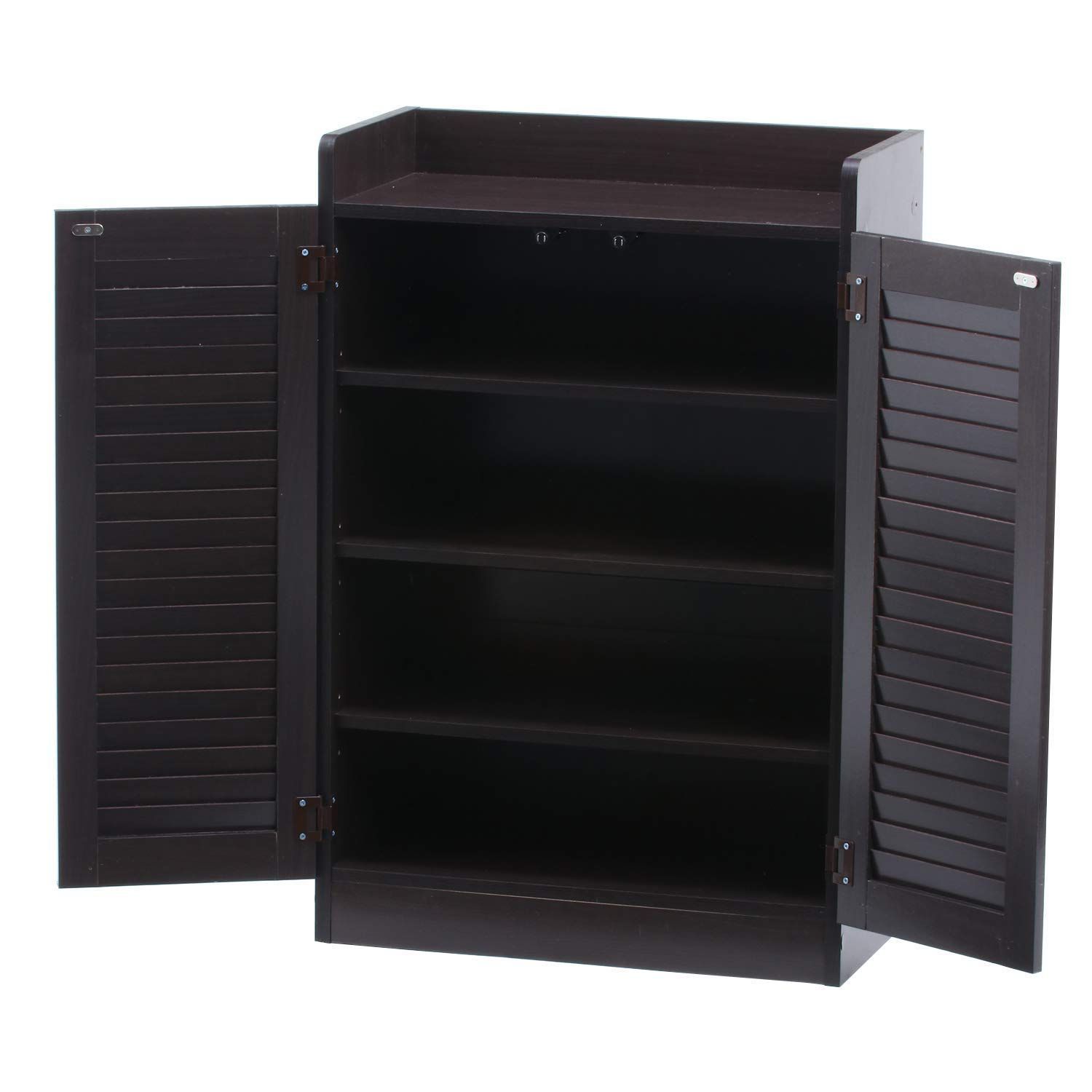 数量 ルーバータイプ オープントップ ブラウン 幅60×奥行33.5×高さ90 cm 玄関収納 4段 靴箱 シューズラック 下駄箱 98993 不二貿易