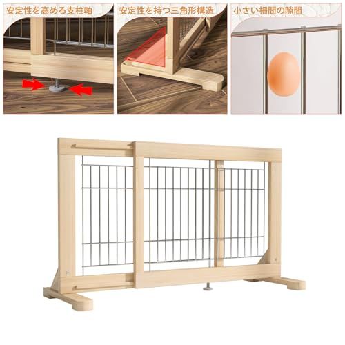 YOCAN ペットゲート 伸縮 置くだけ 高さ60cm 設置幅60-115cm 木製 犬用ゲート 犬 フェンス 室内 中小型犬用 倒れない 飛び出し防止柵 脱走防止ペットガード 広がる