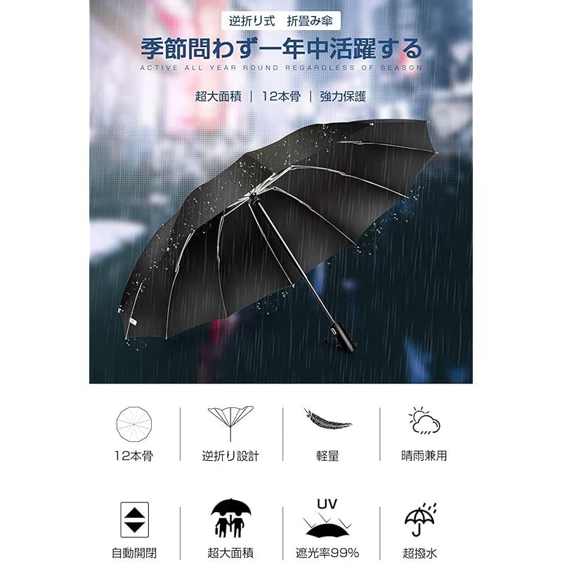 超大サイズ 12本骨 折りたたみ傘 ワンタッチ自動開閉 メンズ傘 大きい 逆折り式 折り畳み傘 風に強い テフロン加工 耐風撥水 丈夫耐久 折りたたみ日傘 遮光遮熱 UVカット 晴雨兼用傘 梅雨対策 台風対応 豪雨対応 メンズ レディース 父の 0