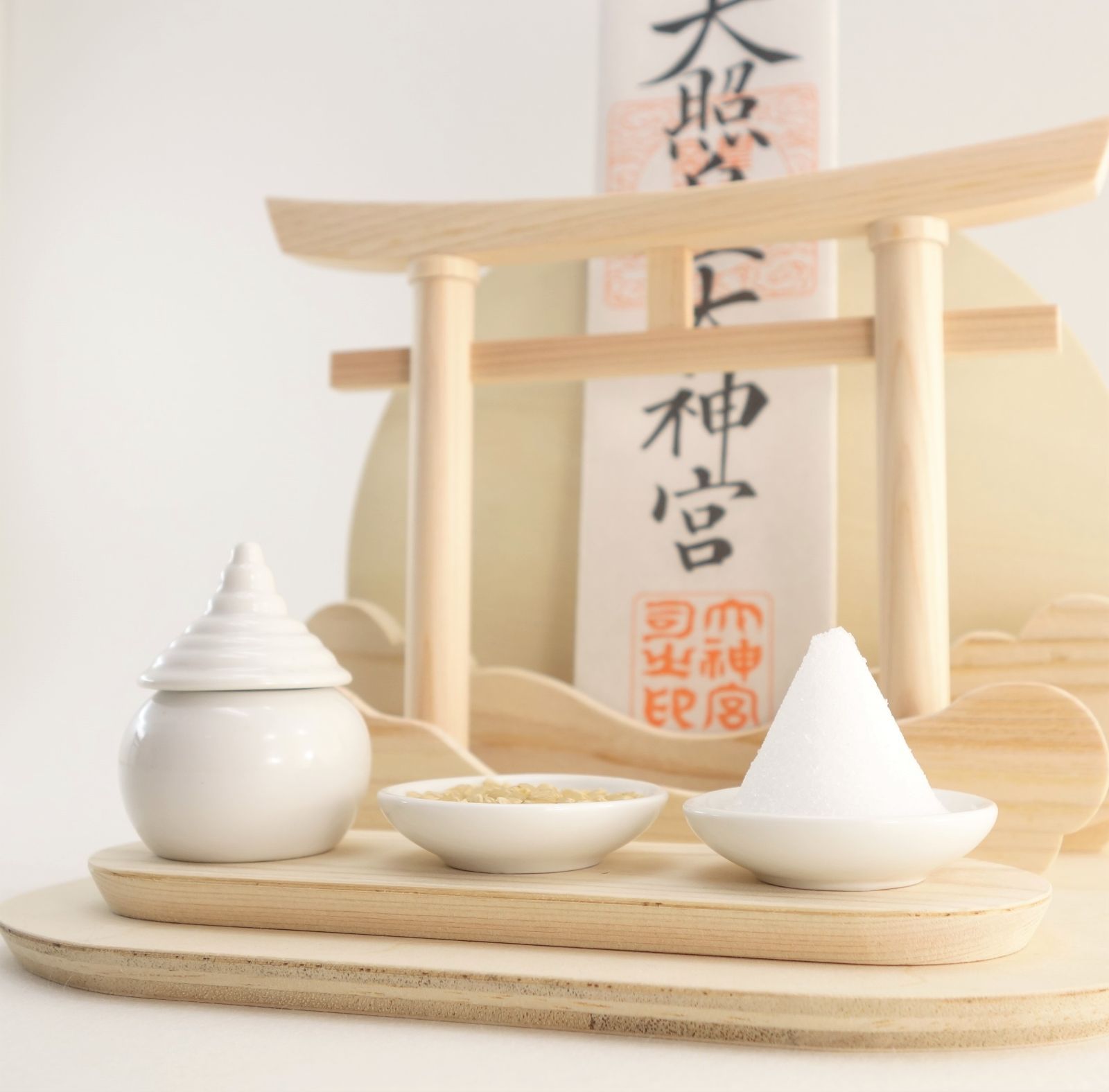 台輪鳥居と最低限のお供え物(水・米・塩)が出来る神具が付属しますので、すぐにお祀りすることが出来ます。