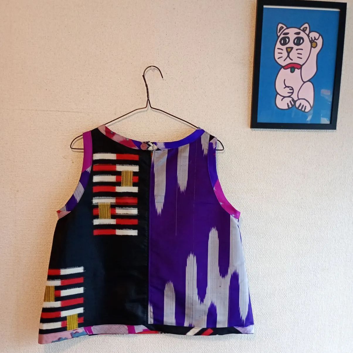 銘仙やアンティーク着物をたくさん繋いでランダムパッチワークノースリブブラウス作りました