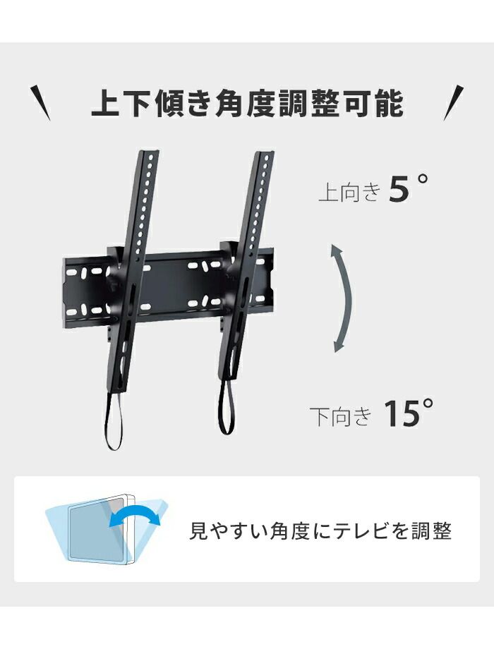 壁掛けテレビ 金具 TV 角度調整 上下 前後傾チルト 26 55 V 薄型 耐荷重35 kg 水平器付き 壁掛け金具 紐ロック式