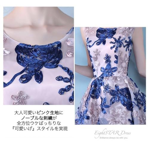 EightSTAR Dress パーティードレス ピアノ発表会 ドレス 大人 結婚式ドレス Aライン お呼ばれ ワンピース 刺繍 フィッシュテール ノースリーブ 20代 30代 M ピンク