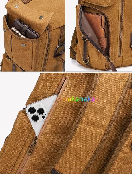 キャンバスレトロショルダーバッグ男性用アウトドアカジュアルリュック男女兼用防水大容量キャリーバッグパソコンリュック