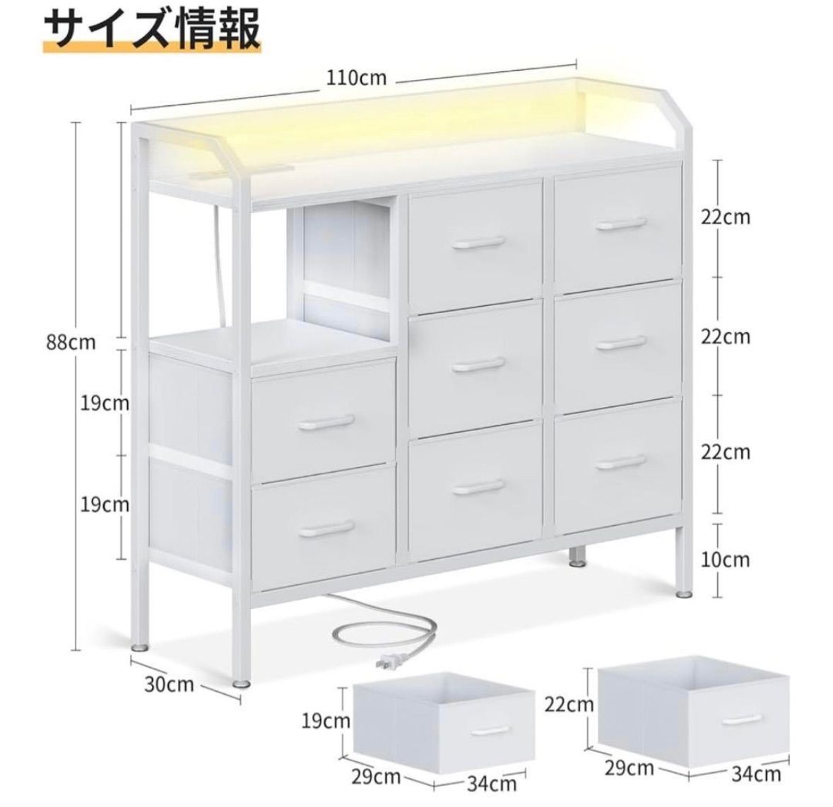 AODK タンス チェスト 衣裝ケース 収納ケース 衣装棚 洋服収納 led付き