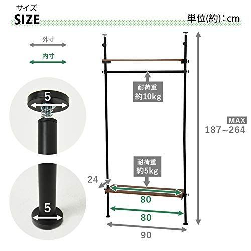萩原(Hagihara) ハンガーラック コートハンガー 突っ張り 【高さ無段階調節】 木目調 幅90 ブラウン KTR-3152BR
