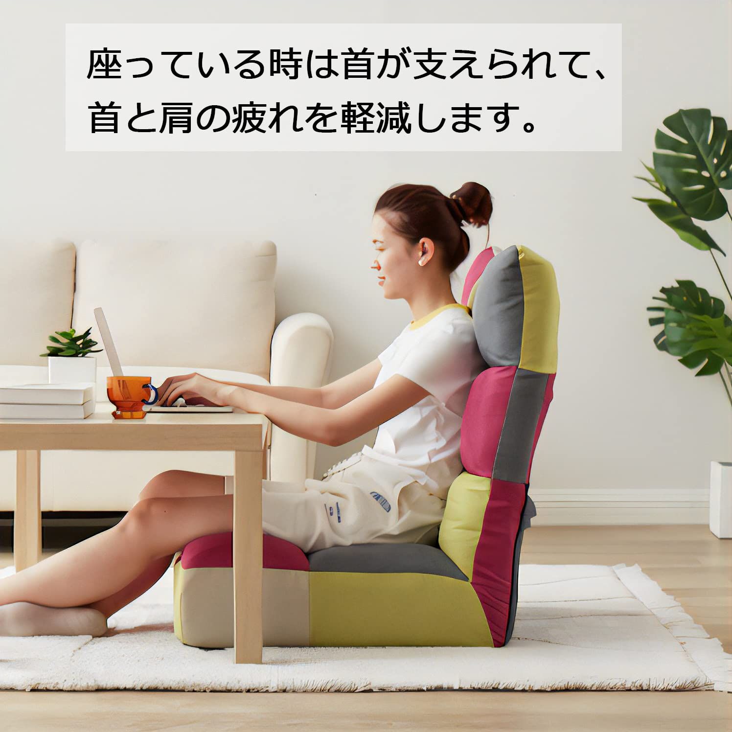 URBAN ポケットコイル 座椅子 パッチワークブルー クッション性 ソファ のようにくつろげる 座椅子ソファー リクライニング 背もたれ 1人用 ハイバック 独立したスプリングが体圧を分散 F-1955