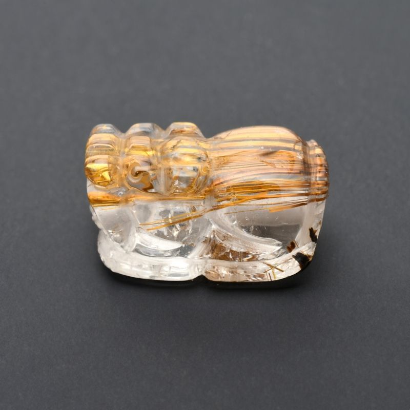 美しいブロンズ針の艶が豊かさを象徴 1点物 ゴールド タイガールチル クォーツ 貔貅 ヒキュウ GHHKU 2 3 g蓄財 金運祈願 運気アップ 財運 商売 盛 昇運 お守り ご褒美 パーツ 貫通穴あり 京海堂 天然石の卸 京の蔵
