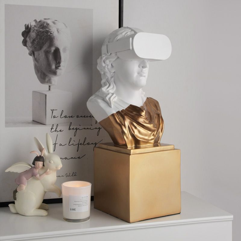 ギリシャ人の胸像が特徴的で、さらにVRゴーグルを身に着けている姿はユニークで個性的です。