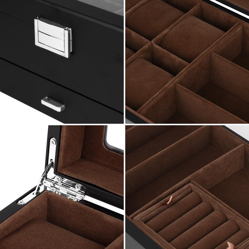 ケース 指輪 ブレスレット収納 腕時計6本 メガネ7本 サングラス7本 腕時計 眼鏡 ジュエリー収納ボックス 2層木製時計ケース Baskiss