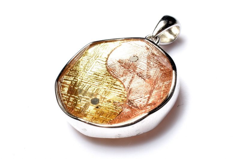 スウェーデン産シルバー925 ギベオン メテオライト隕石 18 mm ゴールド ピンクゴールドコーティング 陰陽太 図 ペンダントトップ 売り パワーストーン 天然石 _PRG 2358-3