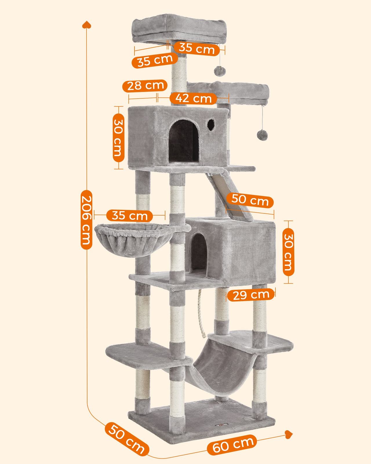 キャットタワー 多頭飼い 大型猫用 スリム 安定感 据え置き ハンモック 転倒防止 高さ206 cm
