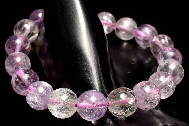 クンツァイト特有の繊維状キャッツアイを確認できる繊細な輝きを纏ったブレスレットです。
