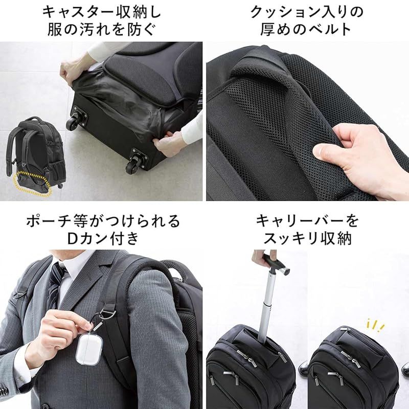 商品名:[サンワダイレクト] リュック キャリー 大容量 35L 2WAY 4輪 キャリーバッグ キャスター付き リュック 200-BAGCR011BK