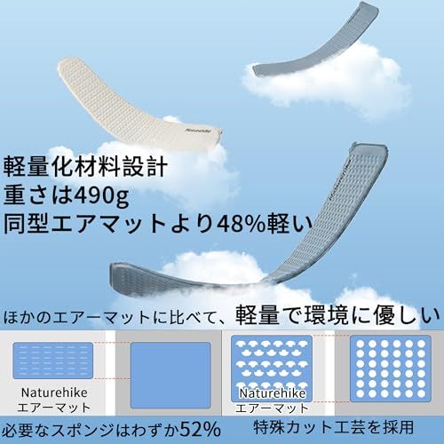 Naturehike【R2.1】エアーマット 自動膨張 超軽量490g 厚手 防水防潮 通気性 汗が溜まらない 両方向バルブ よい寝心地 肌に優しい ソフト 四季使用可能 夏用 収納袋付き コンパクト 携帯便利 ミイラ型 方型 キャンプ用 登山 徒歩 アウトド