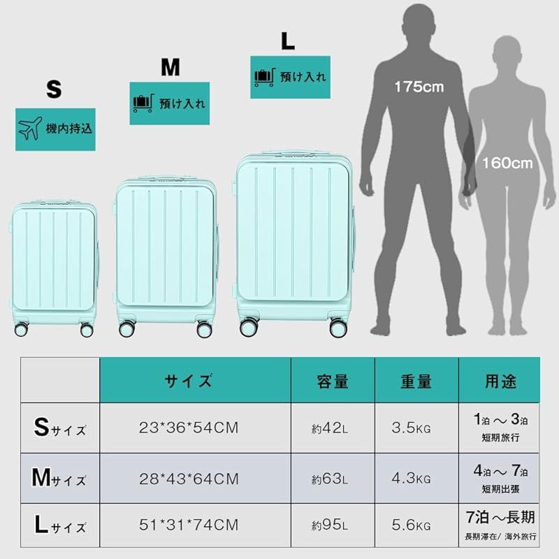 ?【スーツケース フロントオープンで取り出し簡単|Sサイズ機内持ち込み対応】 PCや書類、小物類をスムーズに取り出せるスーツケース フロントオープン構造を採用。移動中や空港のセキュリティチェック時でもすぐにアクセス可能。スーツケース 拡張機能付きながら、コンパクトで機内持ち込みサイズにも対応。仕事用のキャリーケースとしても最適で、急ぎのビジネス対応や通勤にも使える多機能キャリーバッグです。要注意:拡張前のSサイズは機内持ち込み対応(※航空会社によって異なる)