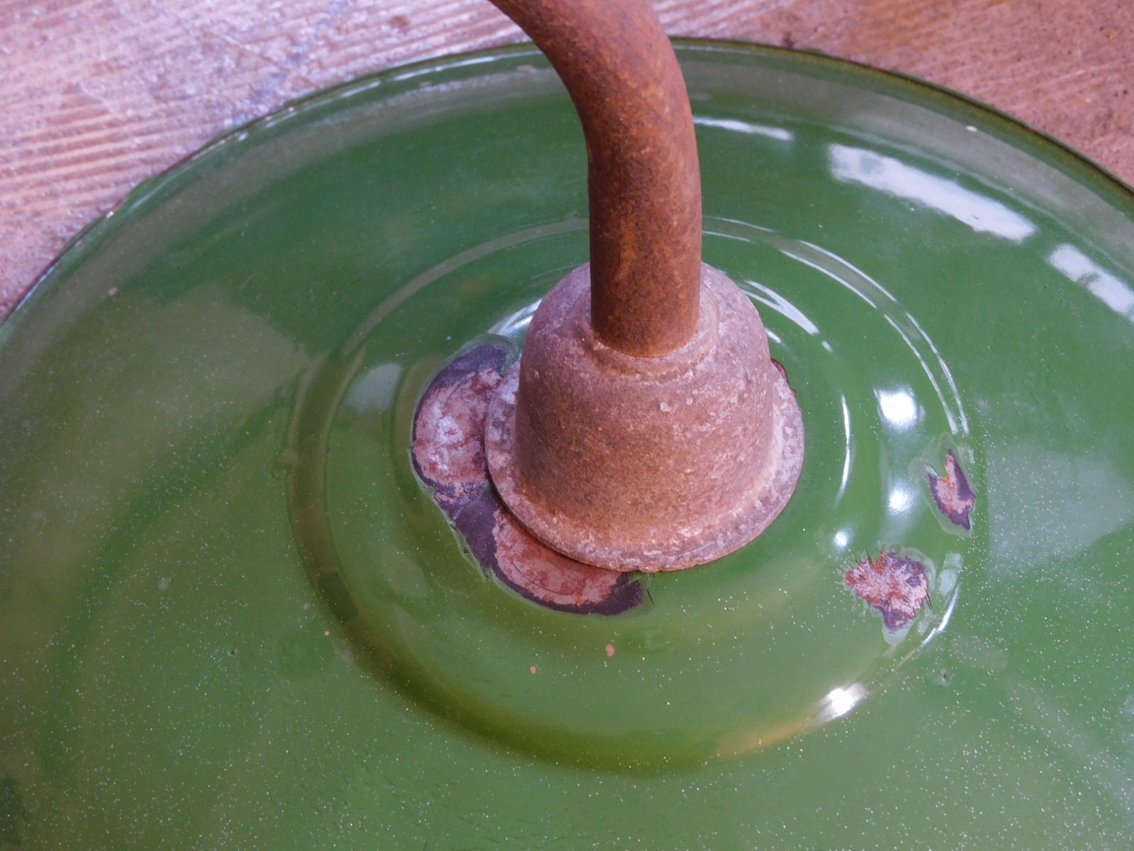取付部品部はアルミ鋳物、笠はホーロー、ブラケット部は鉄製です。