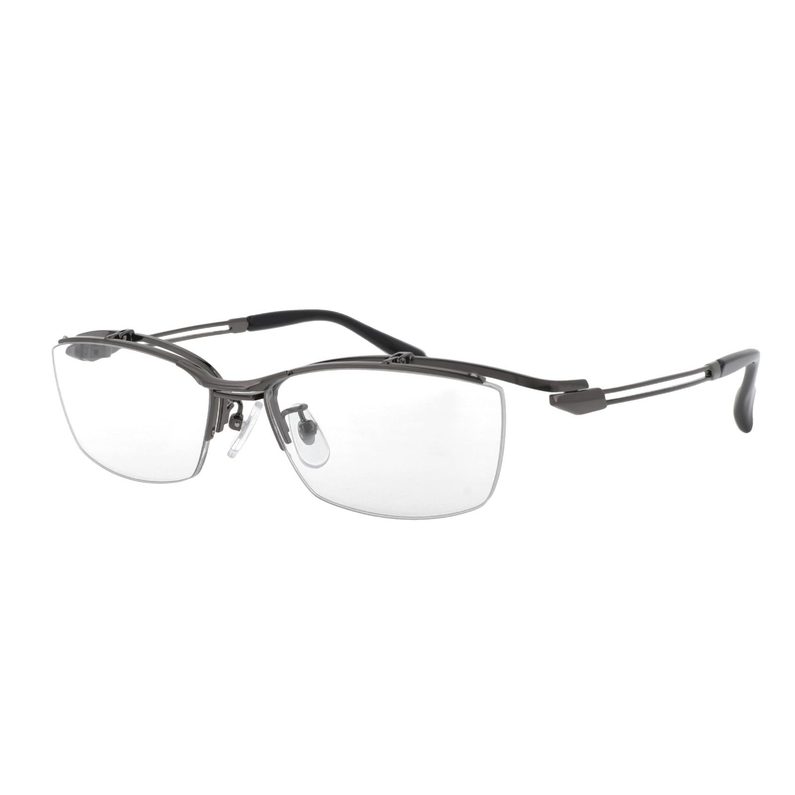 跳ね上げ式の老眼鏡で、かけ外す事なく手元や遠くを見る事ができると共に、調光レンズ機能によって、屋外ではレンズ色が濃くなり紫外線や眩しさを防ぎます。